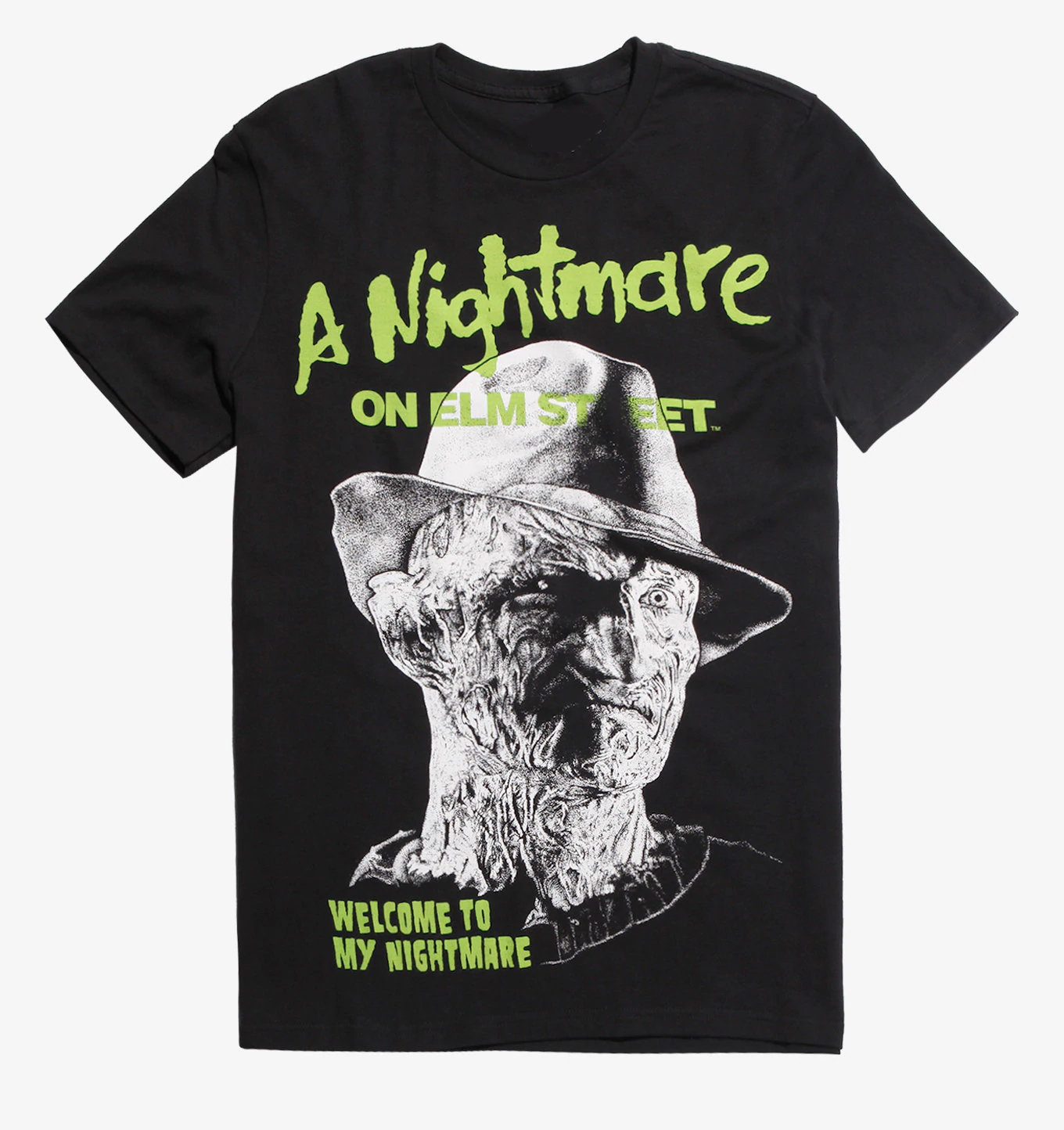 We use DTG Technology to print A Nightmare On Elm Street Freddy Neon T Shirt (BSM).
