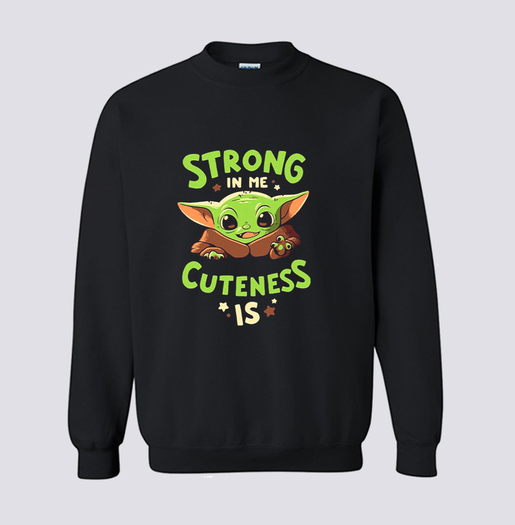 We use DTG Technology to print Baby Yoda Strong In Me Cuteness Is Sweatshirt (BSM).