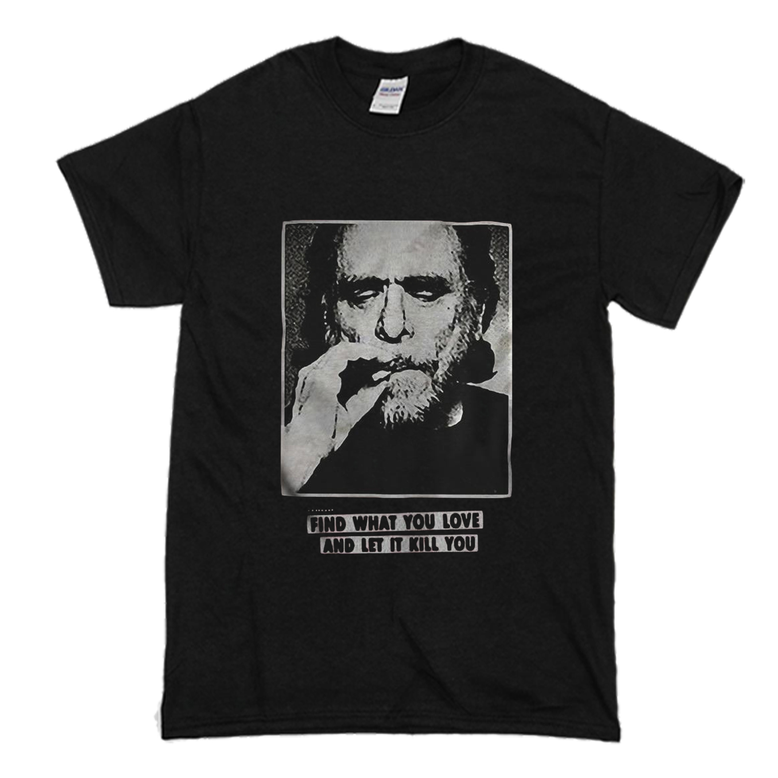 We use DTG Technology to print Charles Bukowski find what you love and let it kill you T-Shirt (BSM).