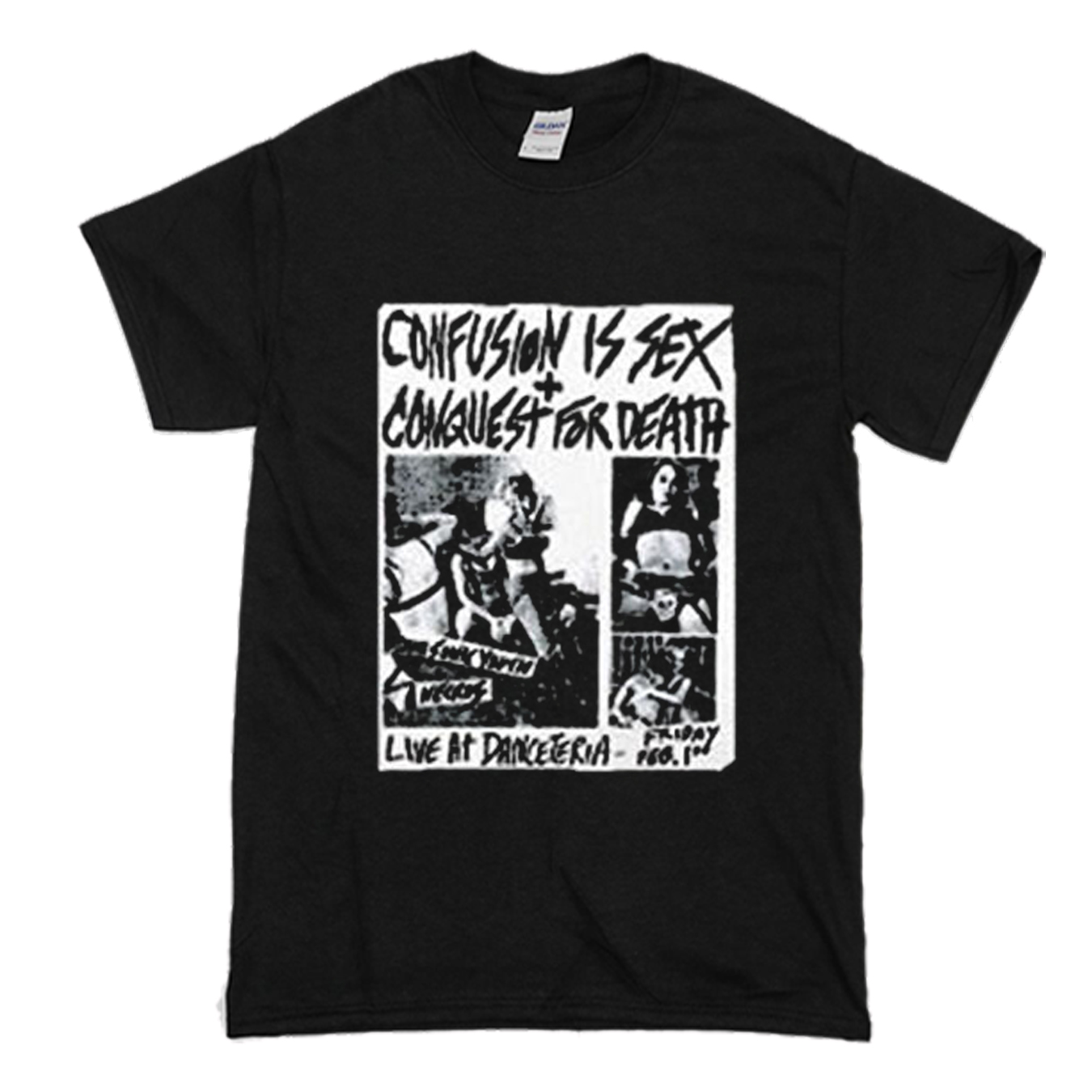 We use DTG Technology to print Confusion is sex + Conquest for Death T-Shirt (BSM) .