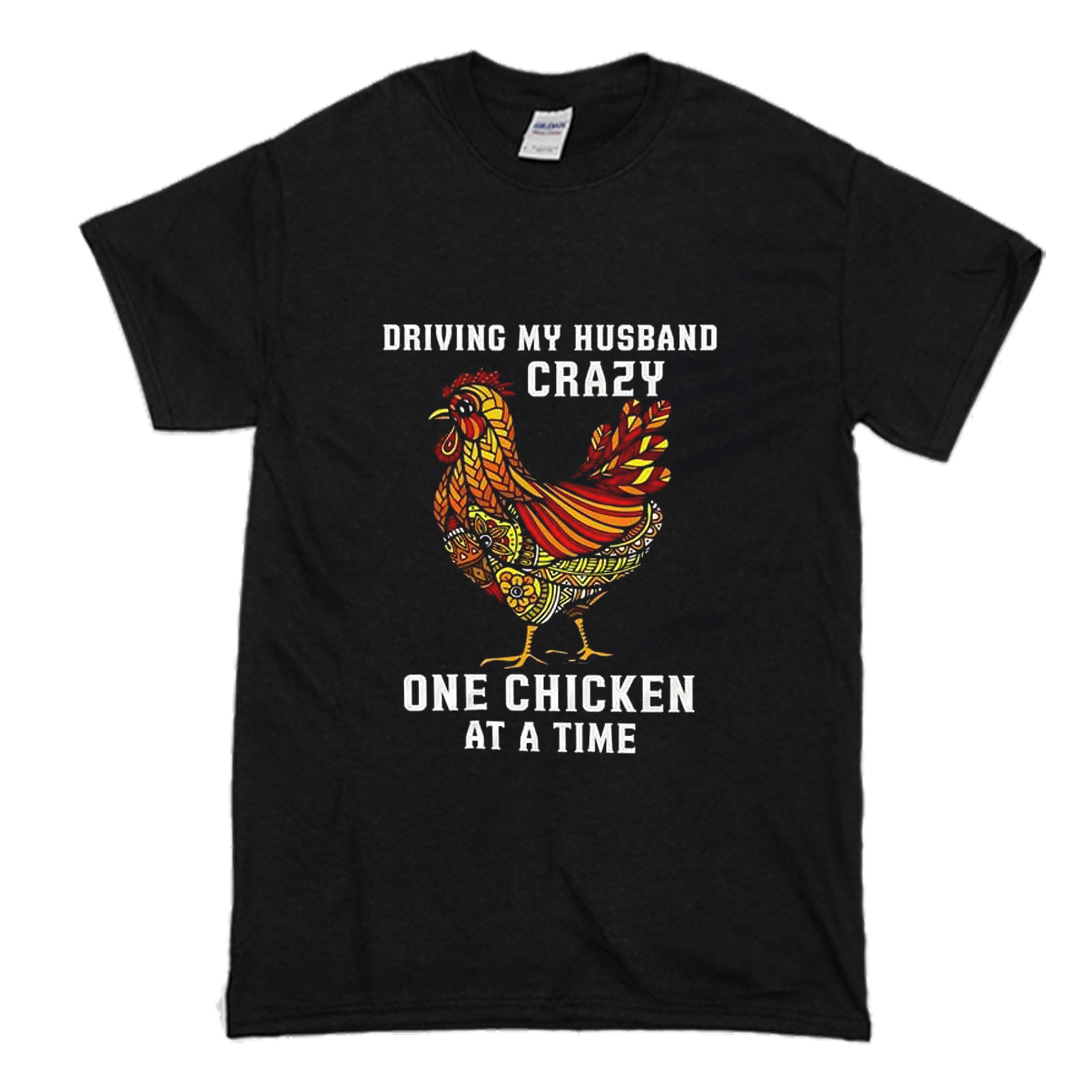 We use DTG Technology to print Driving My Husband Crazy One Chicken at a Time T-Shirt (BSM) .