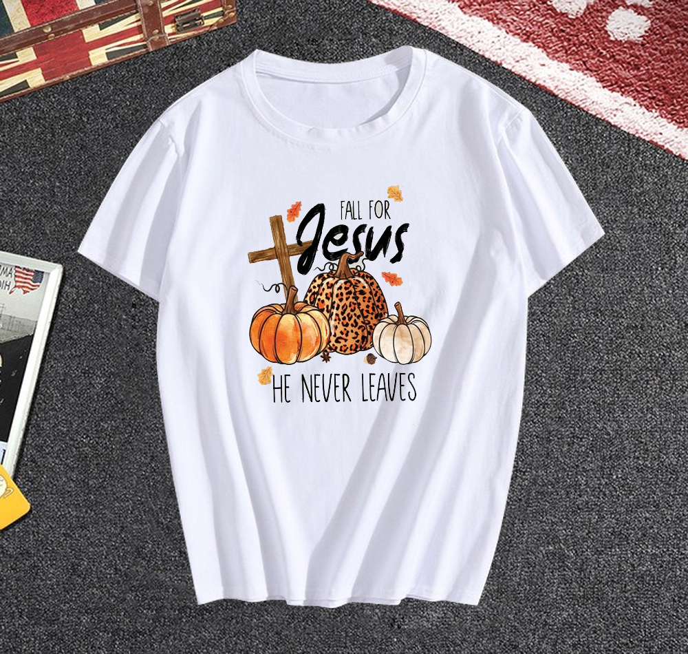Fall For Jesus He Never Leaves T-Shirt