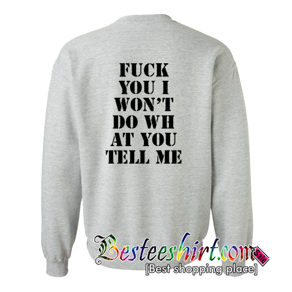 About Fuck You I Won’t Do WH at You Tell Me Sweatshirt Back from besteeshirt.com