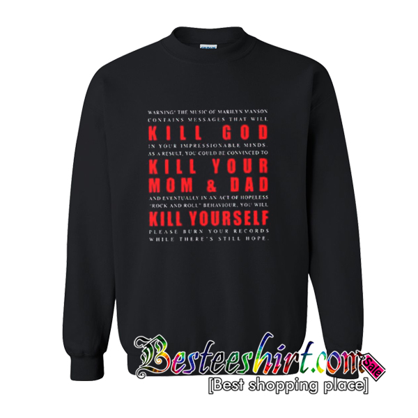 Have Questions about KILL GOD KILL YOUR MOM & DAD KILL YOURSELF Sweatshirt ? Please feel free to contact me, thank you for visiting!