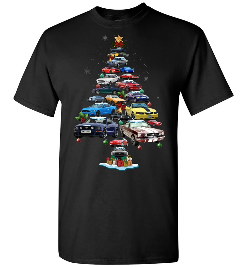 We use DTG Technology to print Mustang Christmas T-shirt (BSM).