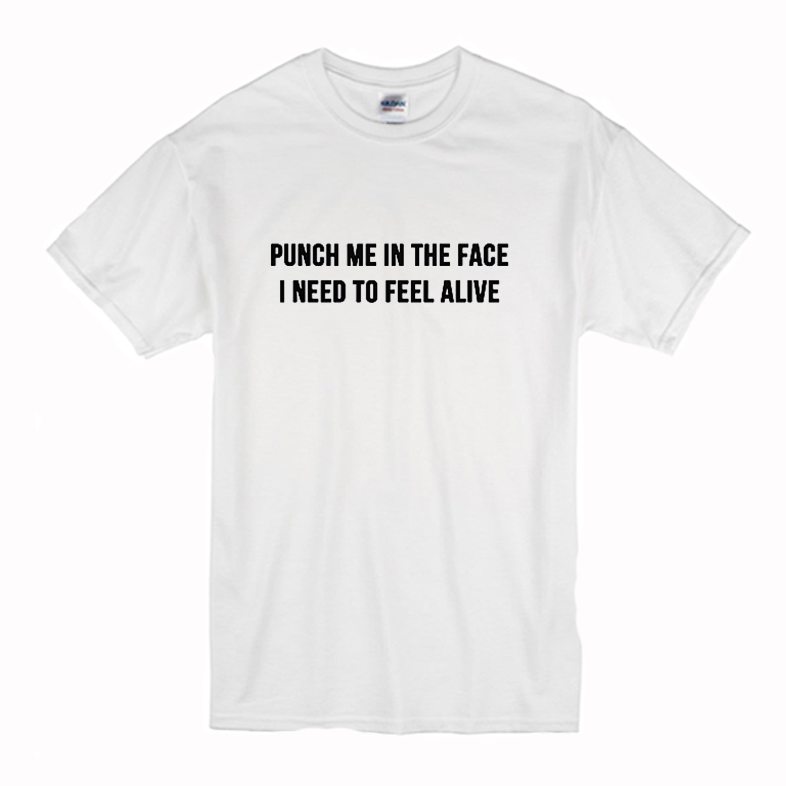 We use DTG Technology to print Punch me in the face i need to feel alive T-Shirt (BSM) .