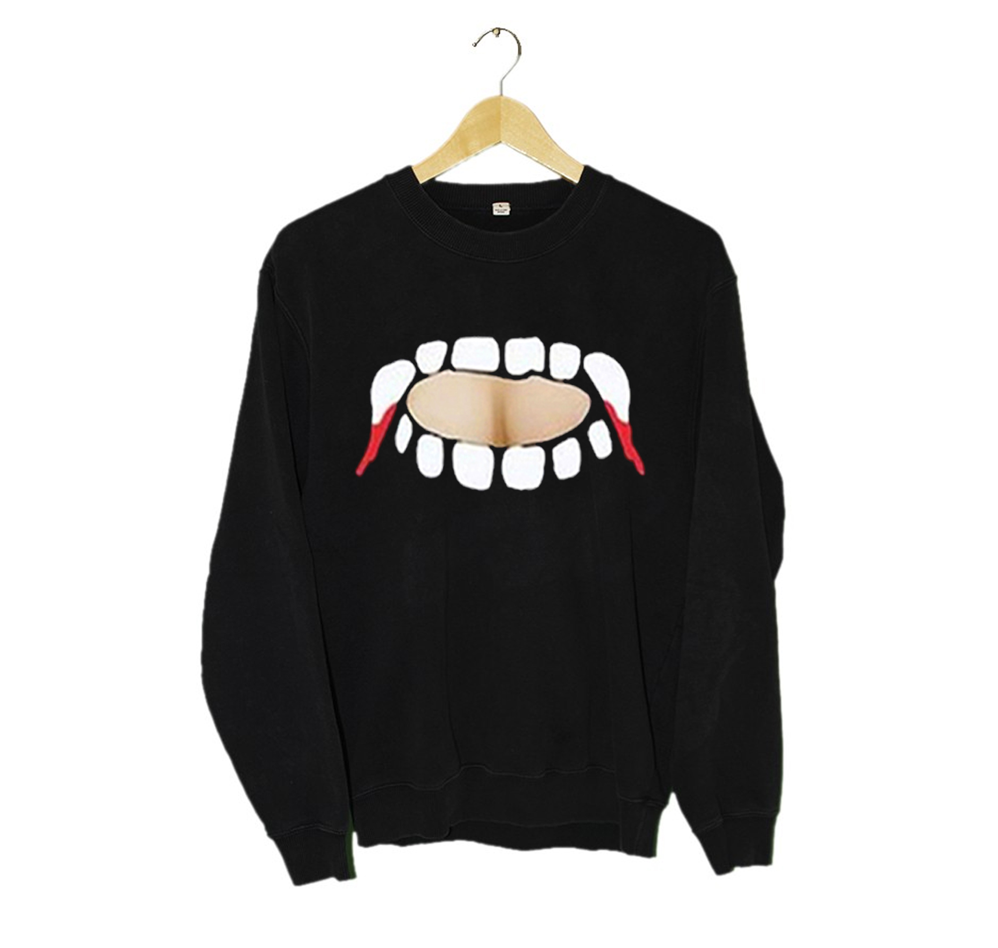 We use DTG Technology to print Vampire teeth keyhole Sweatshirt (BSM) .